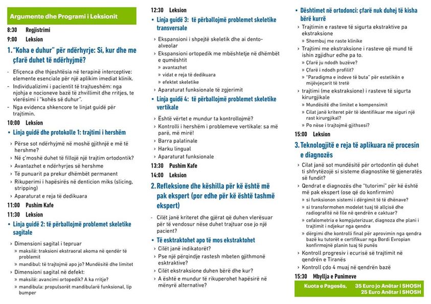 Aktiviteti i organizuar nga Shoqata Dentare Shqiptare do tė mbahet tė premten mė datė 8 maj, nė ambientet e "Hotel Tirana International", salla Balsha. Nė tė do tė referojnė dy profesorė tė huaj, njė nga Universiteti i Zagrebit dhe njė nga Universiteti i Splitit.